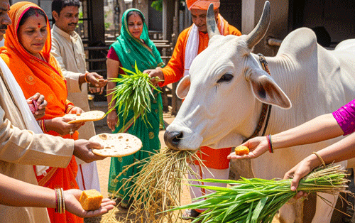 Feeding cows is believed to bring spiritual blessings, cleanse negative karma, and promote peace in one’s home and family. During special occasions like Amavasya, Gopashtami, and Pitru Paksha, this act holds even greater spiritual value.